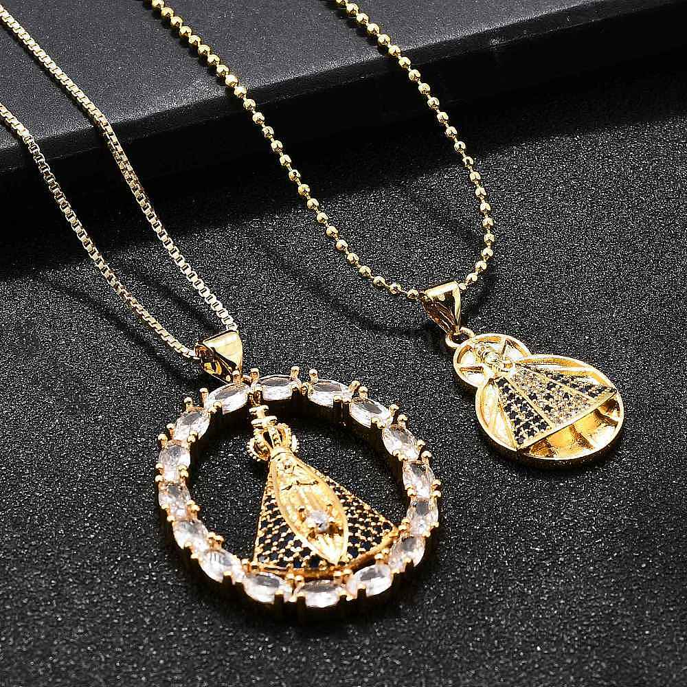 Латунные прозрачные и синие циркониевые ожерелья с подвесками Nossa senhora aparecida для женщин (032PR3)