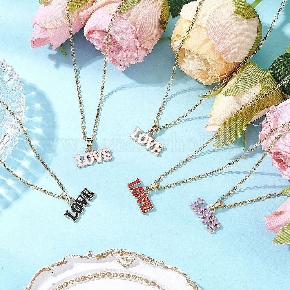 • (52) Непрозрачная лаванда 5 шт. 5 цвета тематика день святого валентина сплав эмаль слово любовь кулон ожерелья, 304 женские ожерелья-цепочки из нержавеющей стали, золотые, разноцветные, 15.87 дюйм (40.3 см), 1 шт / цвет