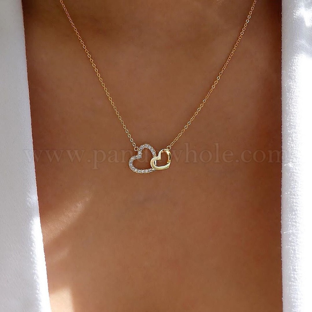 • Золотой 2-сердечко сплав кристалл хрустальные стразы подвески ожерелья для женщин, золотые, 16.14 дюйм (41 см)