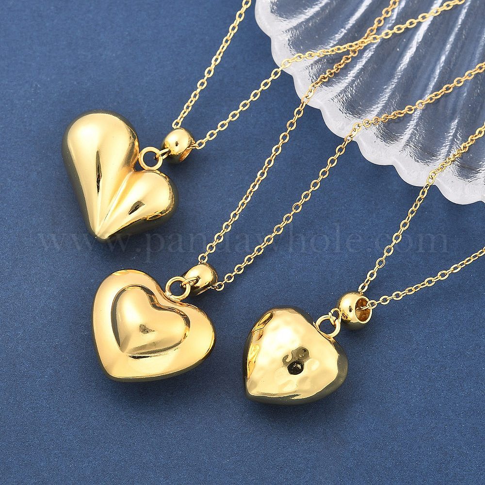 • Настоящее золото 18K 201 ожерелья из нержавеющей стали с текстурированной подвеской в виде сердца для женщин, реальный 18 k позолоченный, 17.60 дюйм (44.7 см)