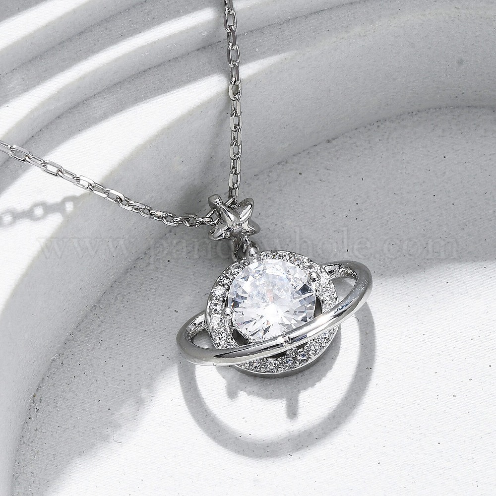 Латунные микропаве кубические цирконии звездные подвески ожерелья для женщин, планета