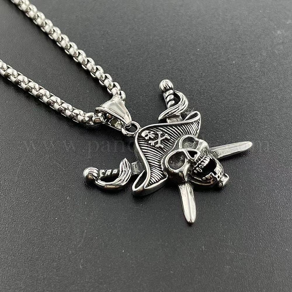 Стильный панк 304 ожерелья из нержавеющей стали с пиратским черепом для мужчин
