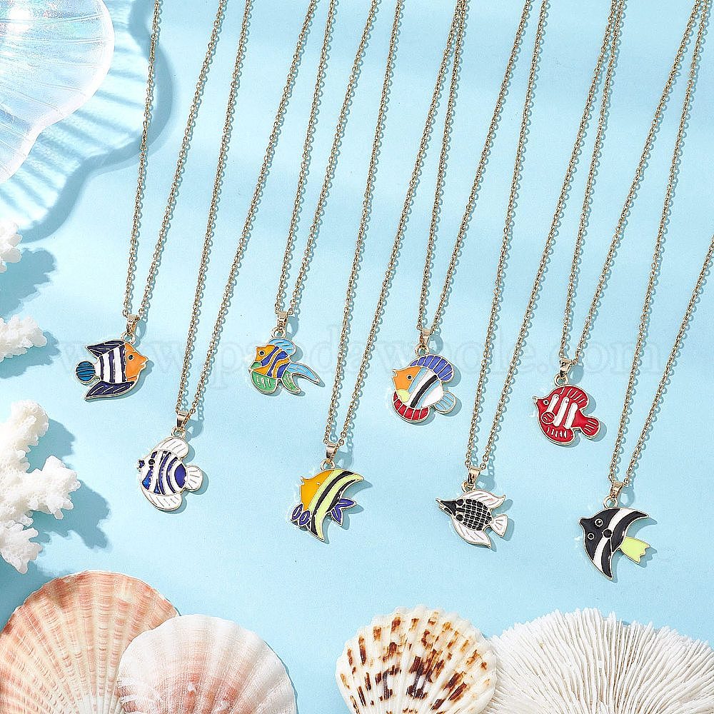 8 шт 8 стили океан тема сплав эмаль рыбы кулон ожерелья, 304 ожерелья из троса из нержавеющей стали для женщин, золотые