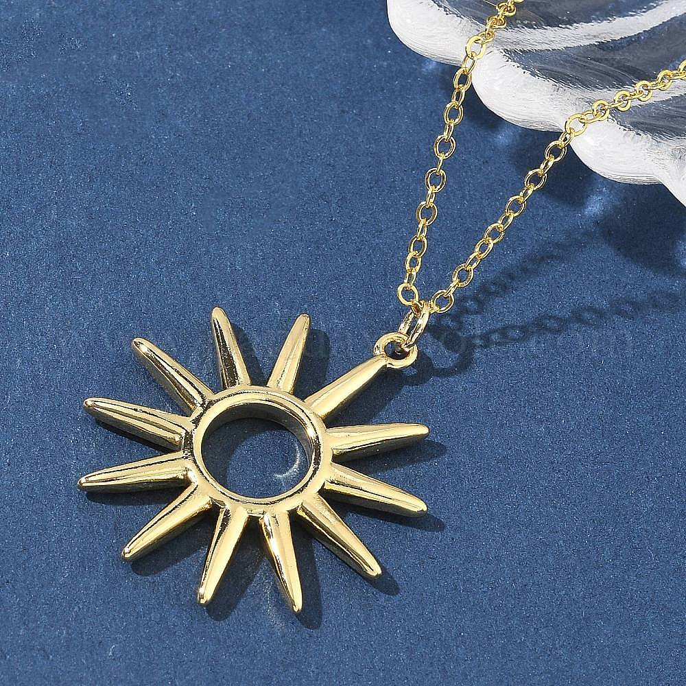 • Настоящее золото 18K Латунные полые солнечные подвески ожерелья для женщин, реальный 18 k позолоченный, 17.44 дюйм (44.3 см)