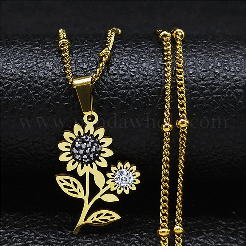 201 ожерелья с подвеской в виде подсолнуха из нержавеющей стали и стразами