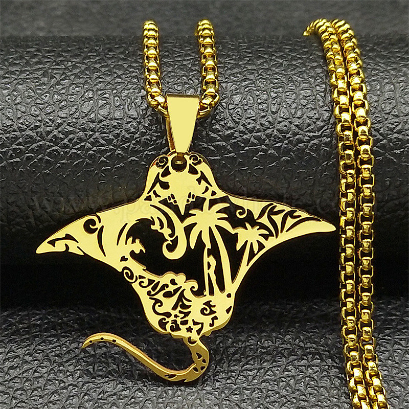 • Золотой 201 ожерелья из нержавеющей стали с подвеской в виде полой рыбы-ската, золотые, 22.95 дюйм (58.3 см)
