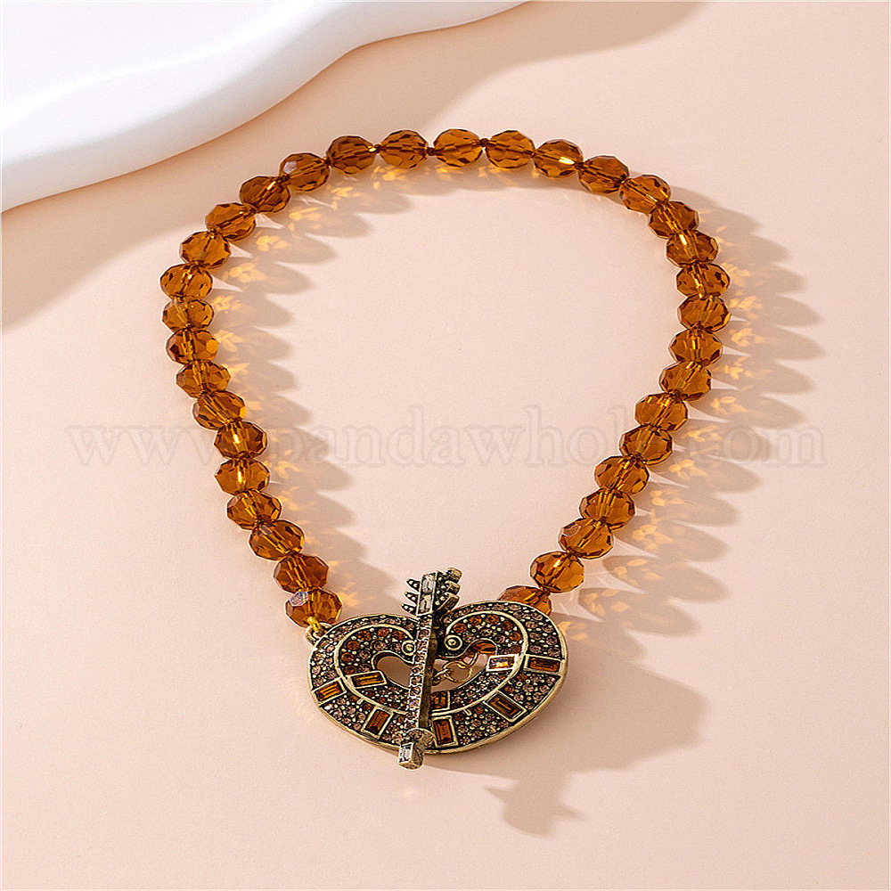 • Сиена Ожерелье с подвеской в виде сердца из сплава, стекла и стразов и серьги-гвоздики, цвет охры, 16.14 дюйм (41 см)