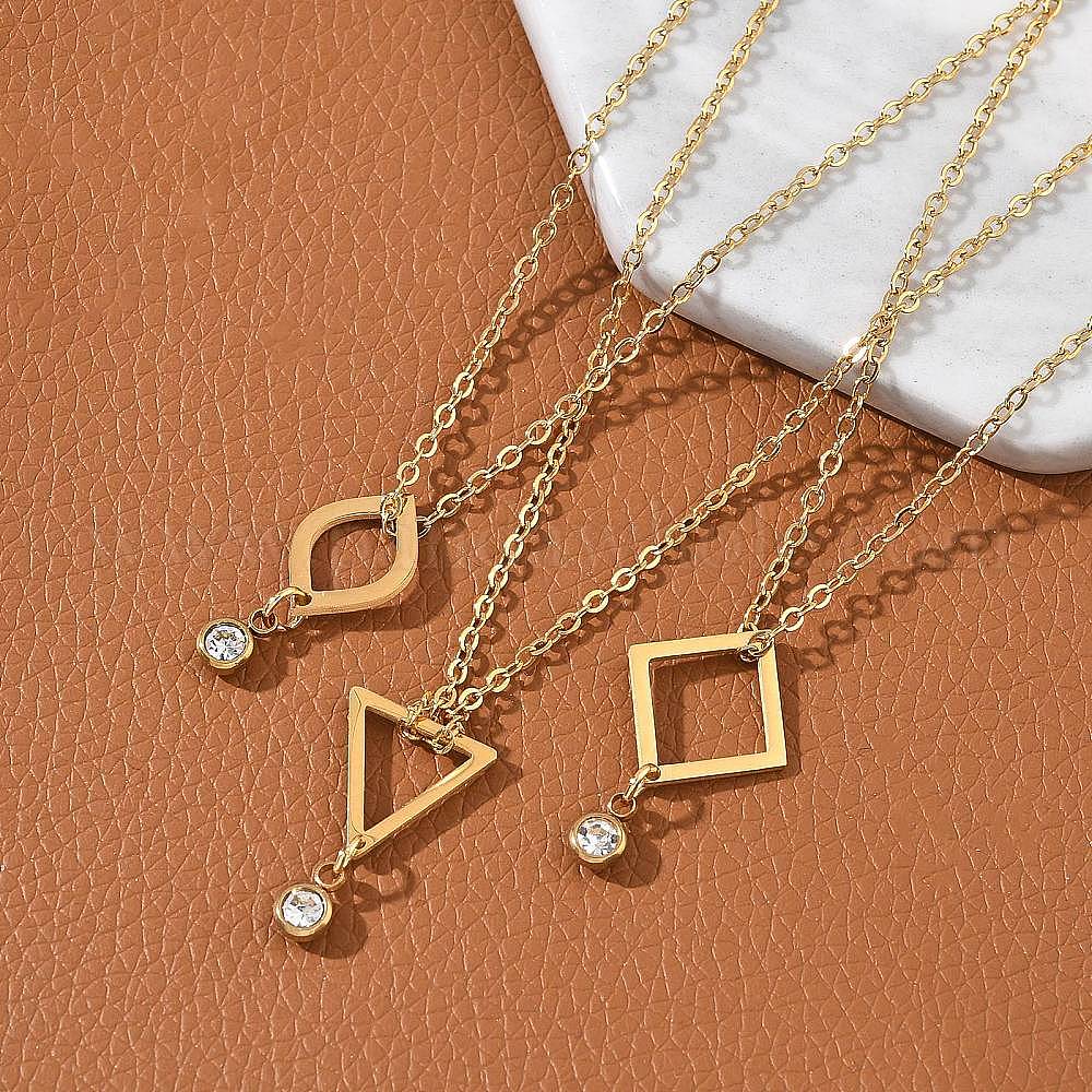 304 ожерелья из нержавеющей стали с геометрическим кулоном и цепочкой из кристаллов и страз, реальный 18 k позолоченный