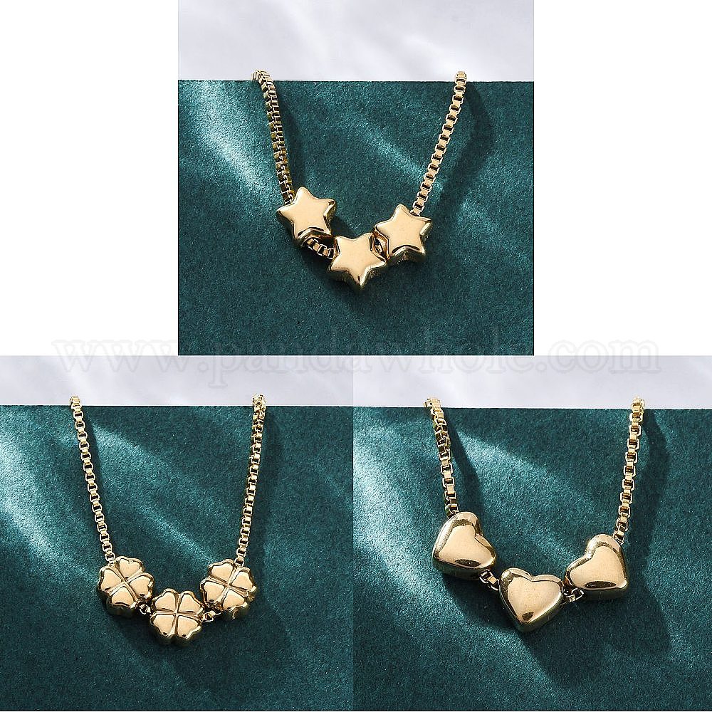304 ожерелья из тройных бусин из нержавеющей стали с подвеской в виде коробки, ионное покрытие (ip), реальный 18 k позолоченный