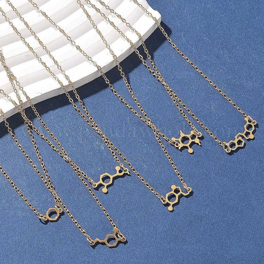 • Настоящее золото 18K 304 ожерелья с подвесками из нержавеющей стали с химическими символами, реальный 18 k позолоченный, 16.81 дюйм (42.7 см)