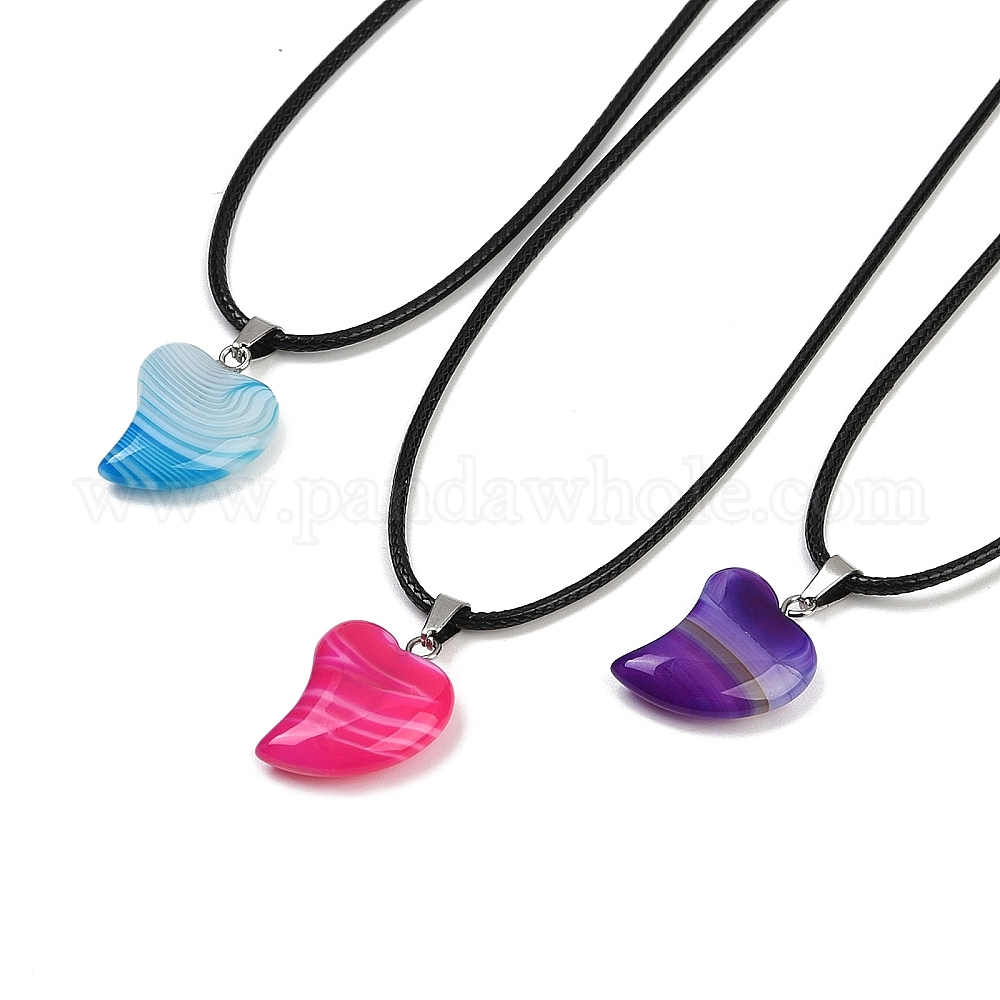 Ожерелья с подвеской в виде сердца из окрашенного натурального полосатого агата, плетеные черные шнуры ожерелья, цвет нержавеющей стали (03388M)