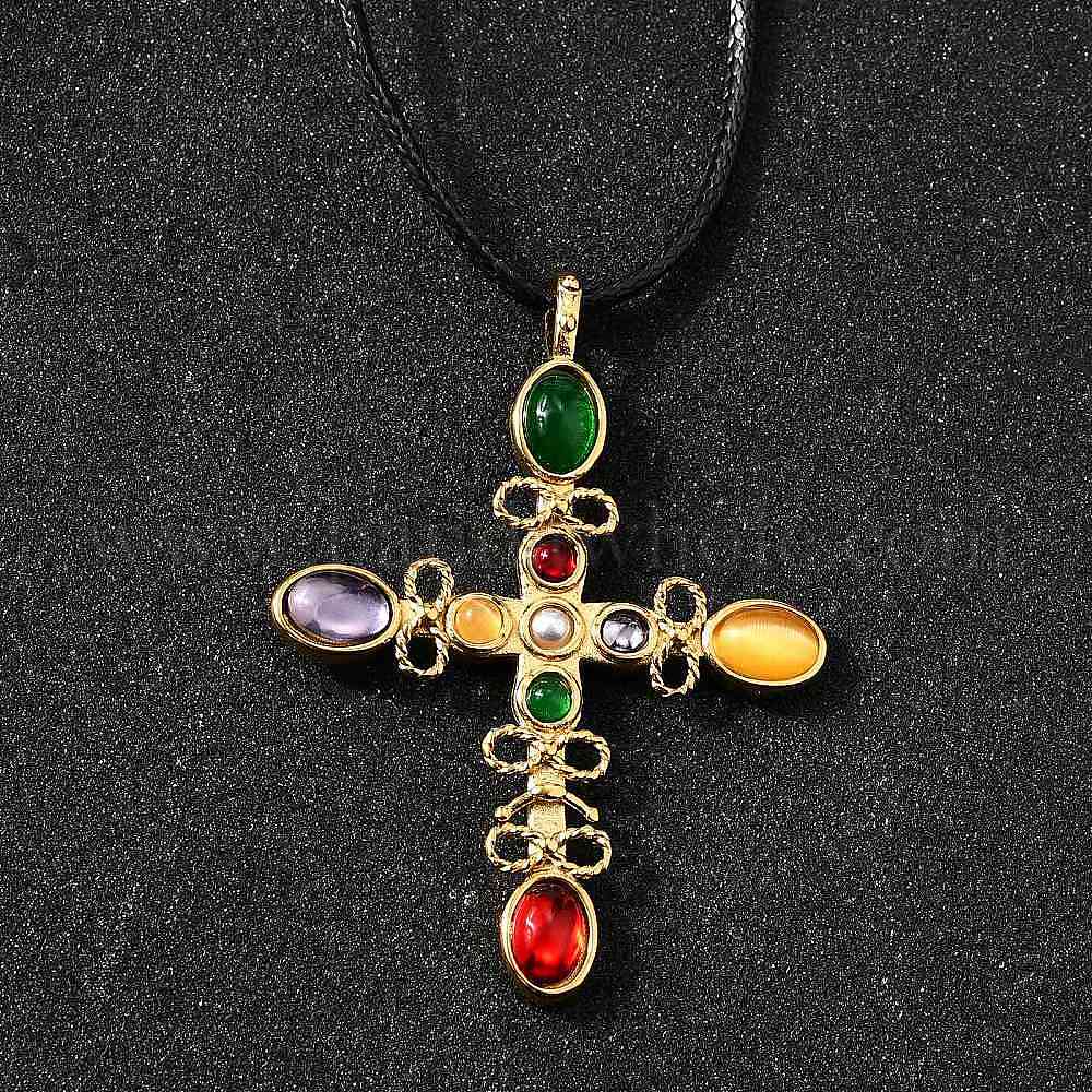 • Настоящее золото 18K 304 из нержавеющей стали кубического циркония кулон ожерелья, с воском веревкой, крестик, реальный 18 k позолоченный, 20.28 дюйм (51.5 см)