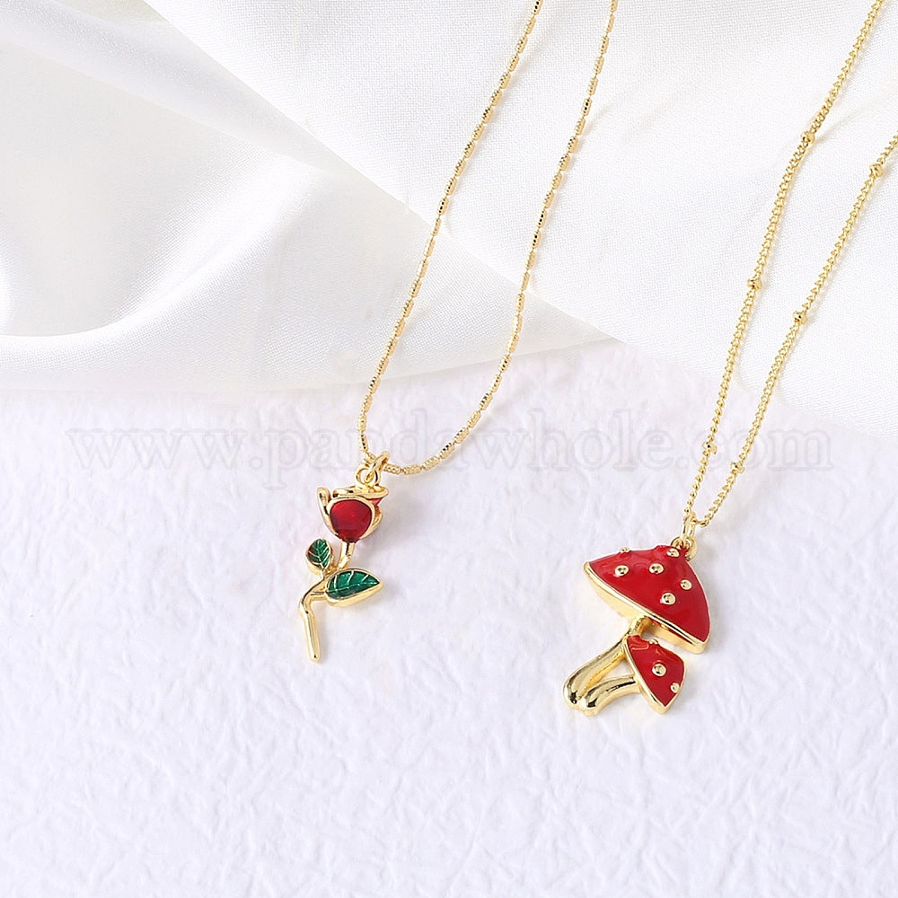 Латунные ожерелья с эмалевым кулоном из огнеупорного кирпича для женщин, реальный 18 k позолоченный (0339WD)
