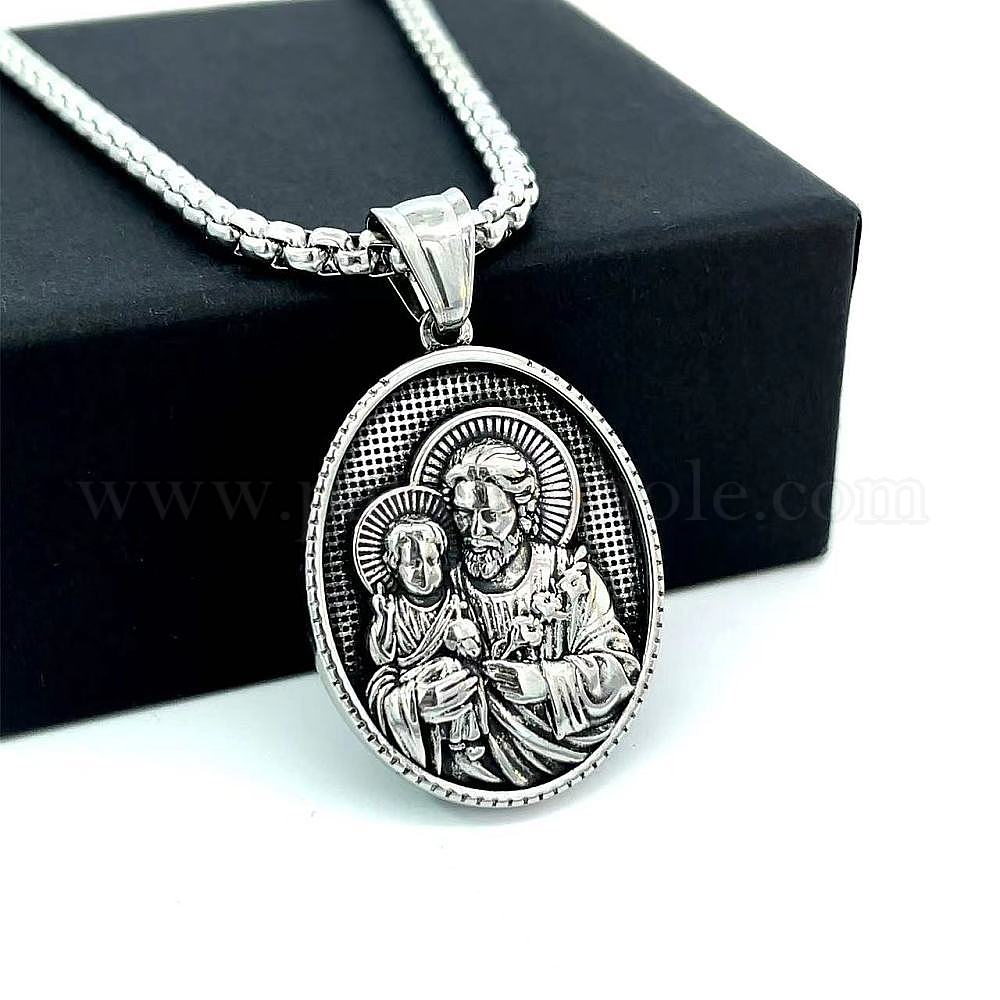 304 Мужские подвески-ожерелья из нержавеющей стали с изображением святого Иосифа и младенца Иисуса