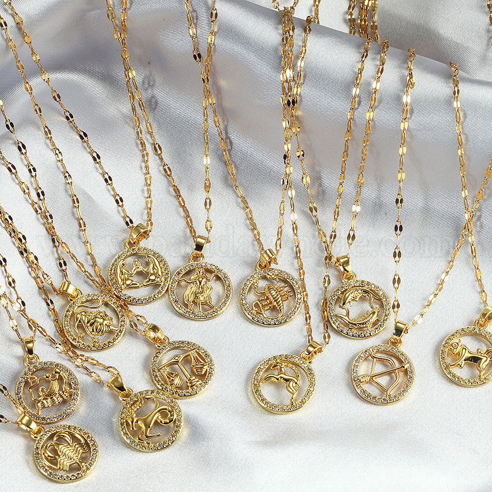 Двенадцать созвездий сплава хрустальные стразы подвески ожерелья для женщин, золотые