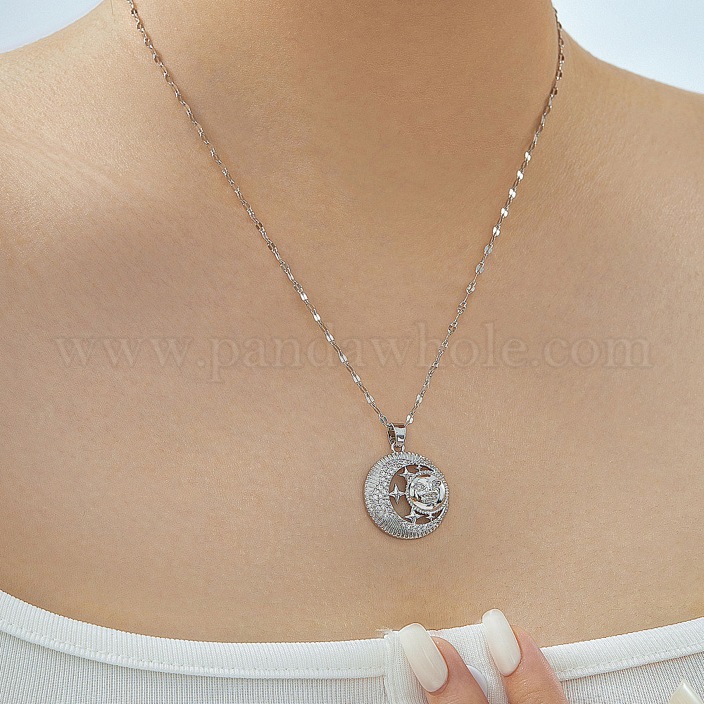 Ретро латунные паве блестящие кубические цирконии луна звезда лицо кулон ожерелья