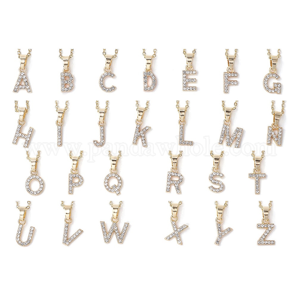 26 ожерелья с подвеской из горного хрусталя из сплава, 304 колье из троса из нержавеющей стали для женщин, Письмо ~ Z