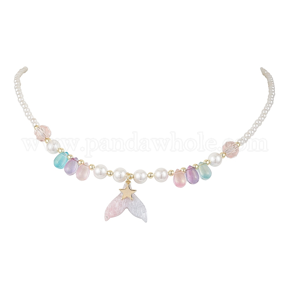 Ожерелья с подвесками из ракушек и жемчуга, рыбий хвост, с синтетическими гематита бисера
