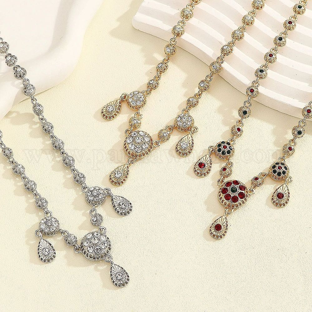 Плоские круглые и каплевидные ожерелья из сплава со стразами для женщин