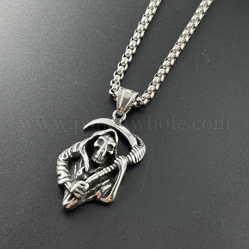 Панк-череп, коса, смерть, жнец 304 кулон из нержавеющей стали, модные мужские украшения в стиле хип-хоп (0343RJ)