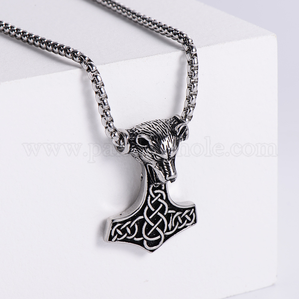 Винтажные 304 ожерелья из нержавеющей стали с подвеской в виде волчьего цветка и молота для мужчин