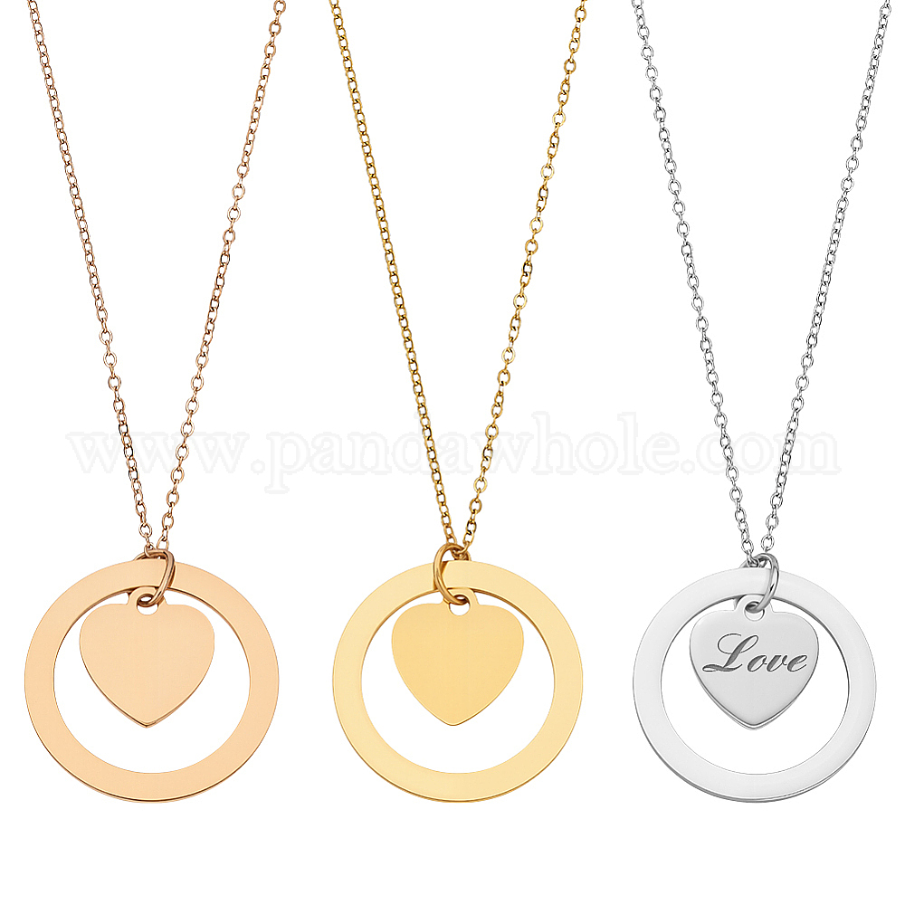 3 шт. 3 цвета 304 ожерелья с подвесками из нержавеющей стали, плоско-круглые с сердцем