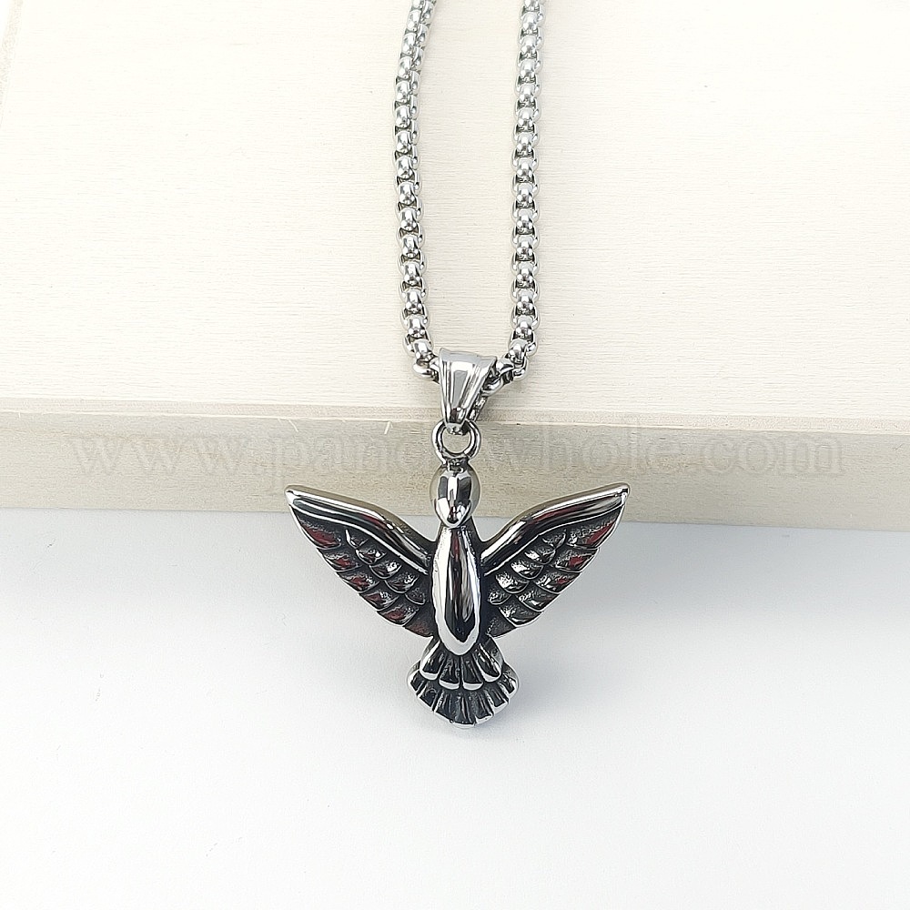 • Нержавеющая Сталь Цвет Ретро ожерелья с подвеской в виде птицы из нержавеющей стали для мужчин, цвет нержавеющей стали