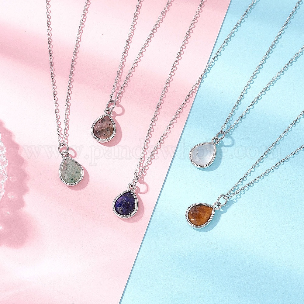 Кулон из натурального смешанного камня в форме капли 304 ожерелья из нержавеющей стали с цепочкой для женщин