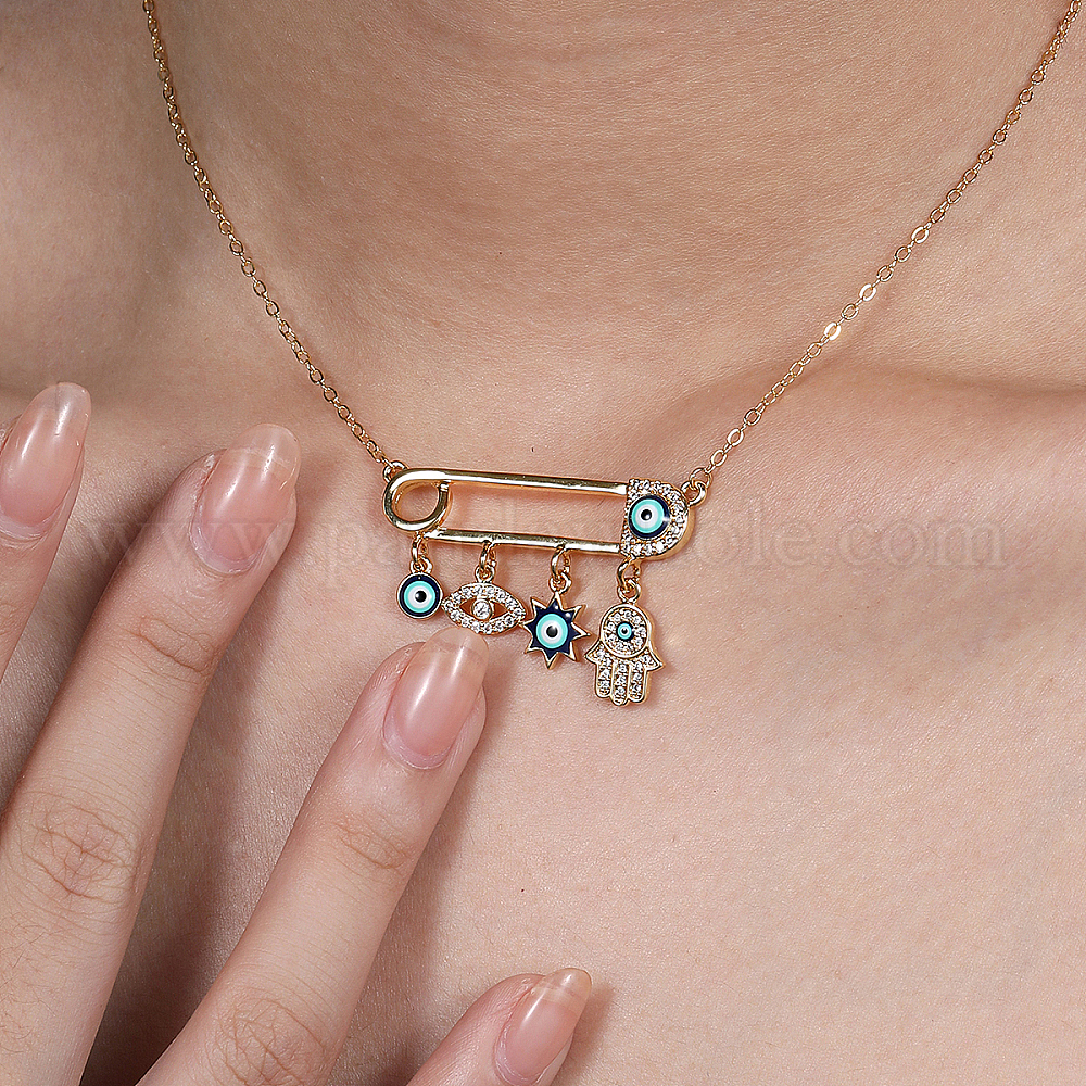 Латунные микропаве прозрачные кубические цирконии синие сглаз булавки подвески ожерелья для женщин