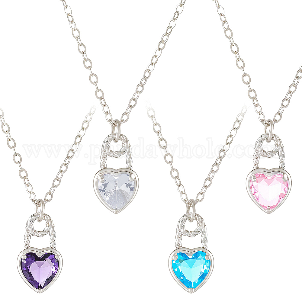 • (52) Непрозрачная лаванда 4 шт. 4 латунные ожерелья с подвеской в форме сердца из кубического циркония для женщин, с железной тросовой цепью, платина, разноцветные, 18.62 дюйм (47.3 см), 1 шт / цвет