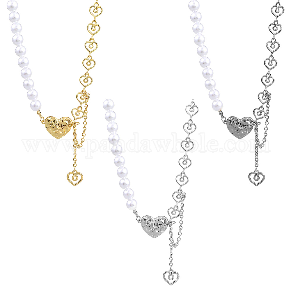 3 шт. 3 ожерелья из сплава с подвеской в форме сердца, ожерелья из железа и искусственного жемчуга, белые