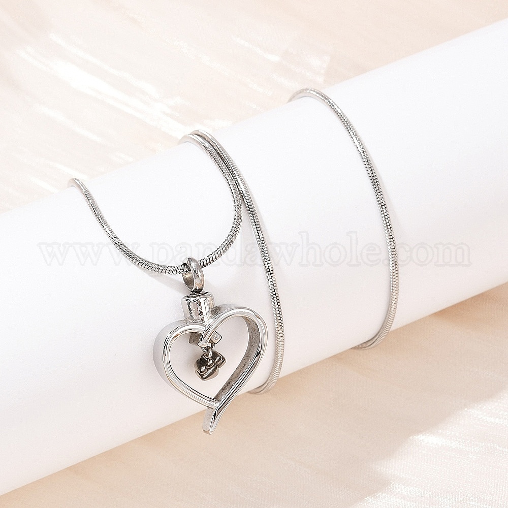 304 подвеска в виде сердца из нержавеющей стали с отпечатком лапы, урна для праха домашних животных, ожерелья, не тускнеет