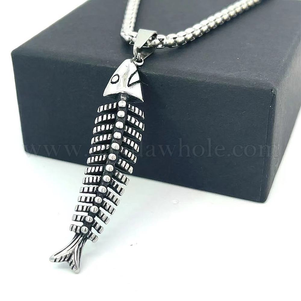 Мужские ожерелья с подвеской из рыбьей кости из нержавеющей стали