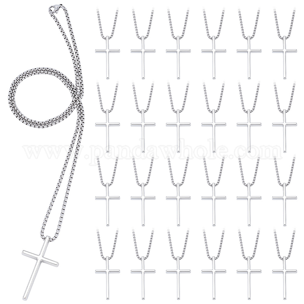 24 Набор подвесок в виде креста из религиозного сплава с цепочкой из нержавеющей стали (марка 667 эквивалент), не тускнеет
