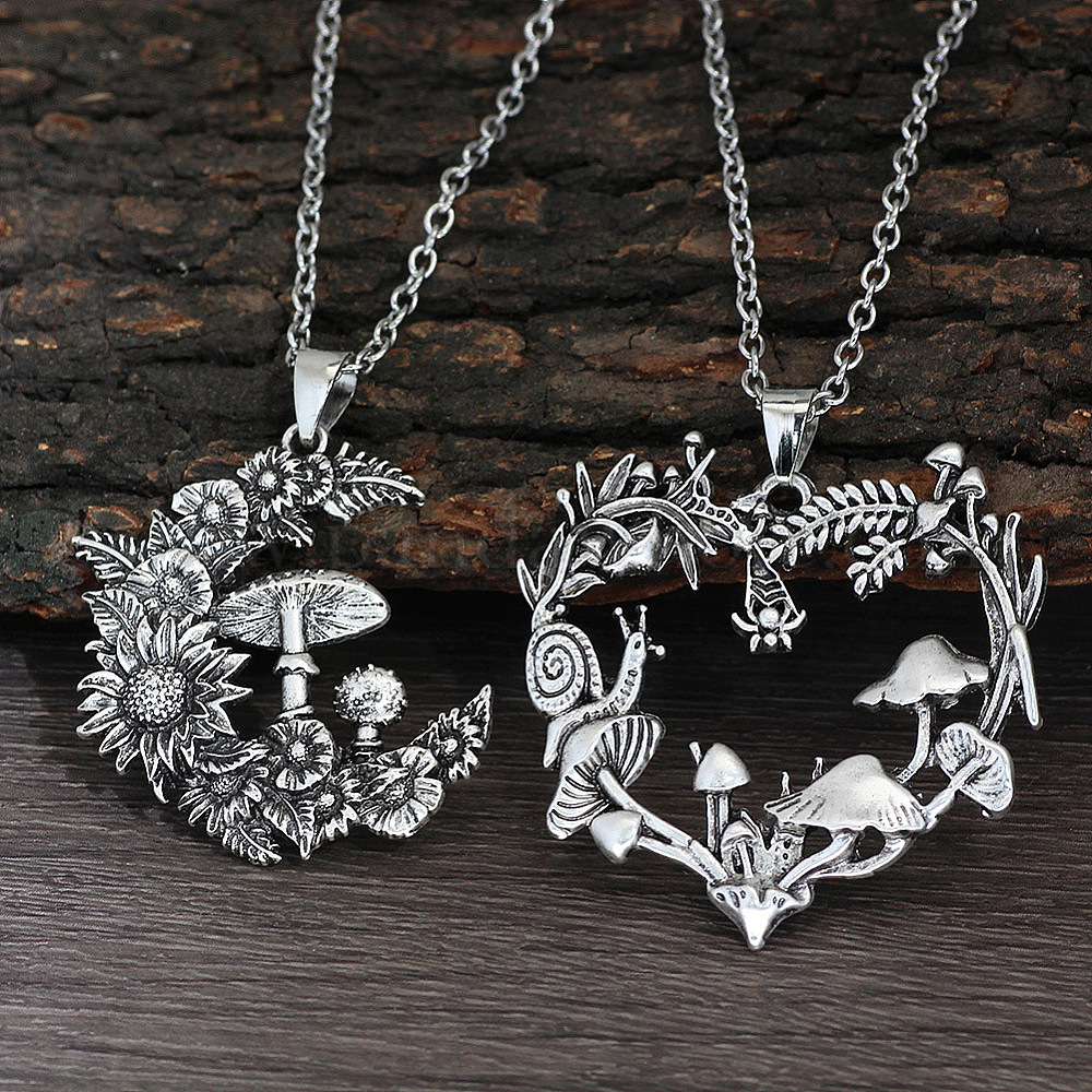 Ожерелья с подвесками из цинкового сплава в виде цветов и грибов, античное серебро
