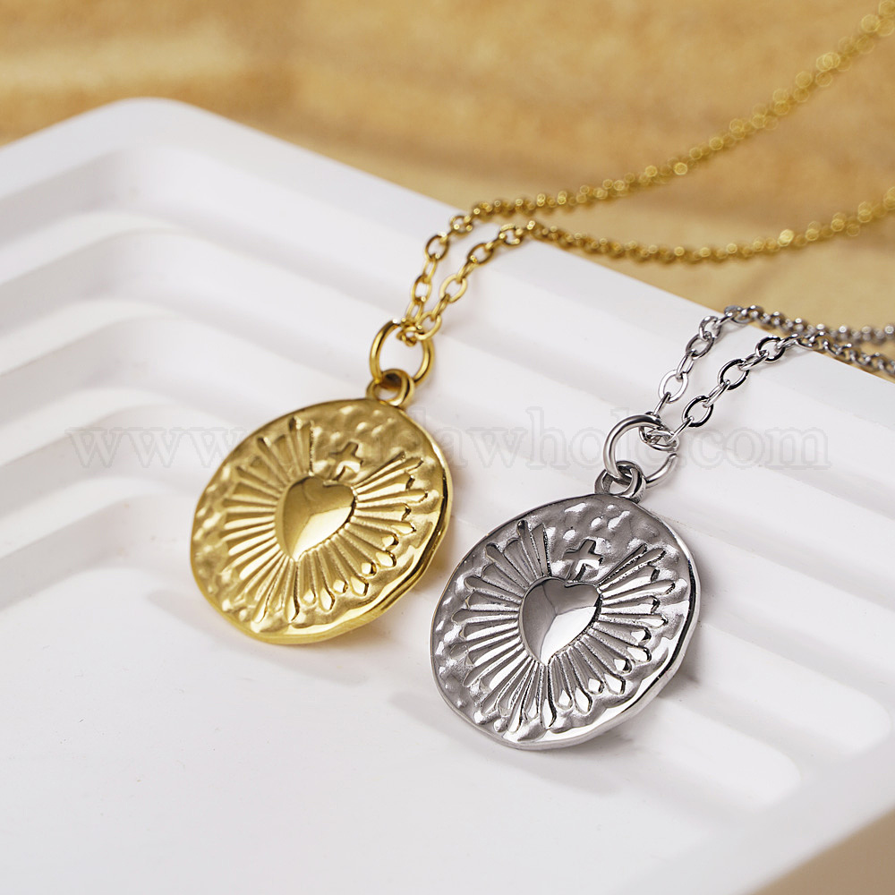 Французский стиль нержавеющая сталь плоская круглая с крестом священное сердце кулон ожерелья для женщин