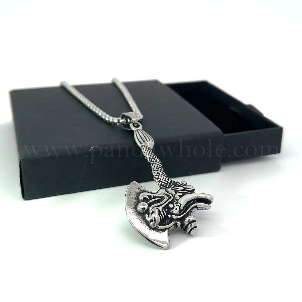Мужское панк-рок ожерелье из нержавеющей стали с подвеской в виде топора дракона