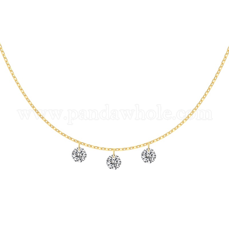 • Настоящее золото 14K Прозрачный кубический цирконий 3 плоская круглая подвеска 925 ожерелья из стерлингового серебра с цепочкой для женщин, реальный 14 k позолоченный, 18.31 дюйм (46.5 см)