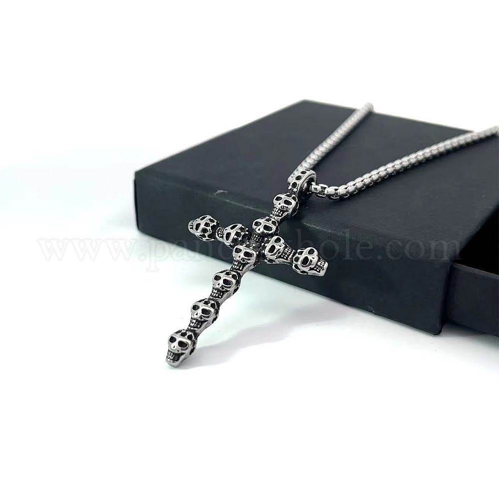 Ожерелья из нержавеющей стали с готической подвеской в виде черепа и креста для мужчин