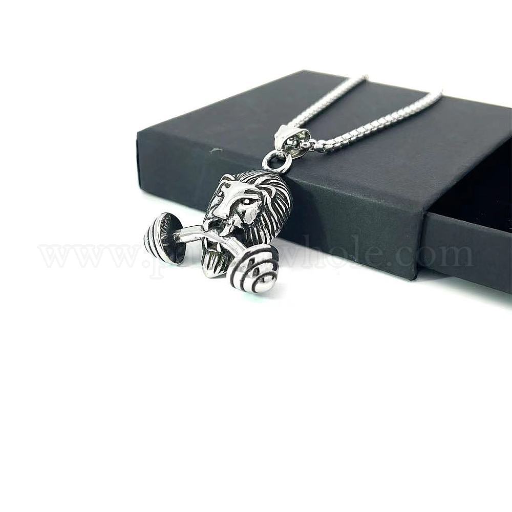 Ожерелья из нержавеющей стали с подвеской в виде льва и гантели для мужчин
