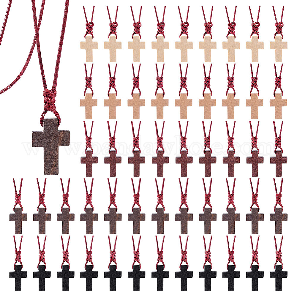 60 шт 5 цвета деревянный крест кулон вощеный полиэстер шнур ожерелья