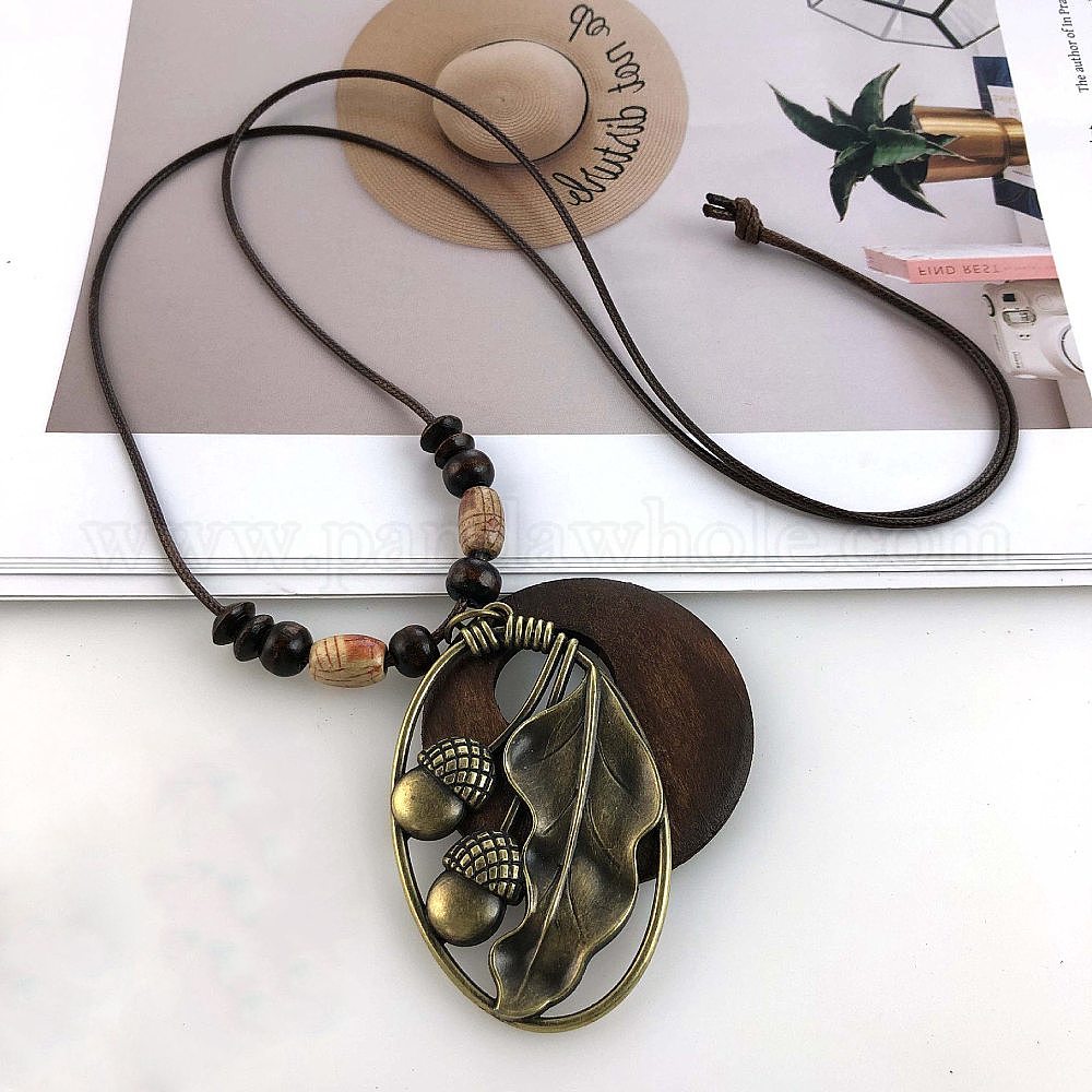 • Лист Длинные ожерелья из сплава пончиков в стиле бохо для женщин, античная бронза, лист, 35.43 дюйм (90 см)