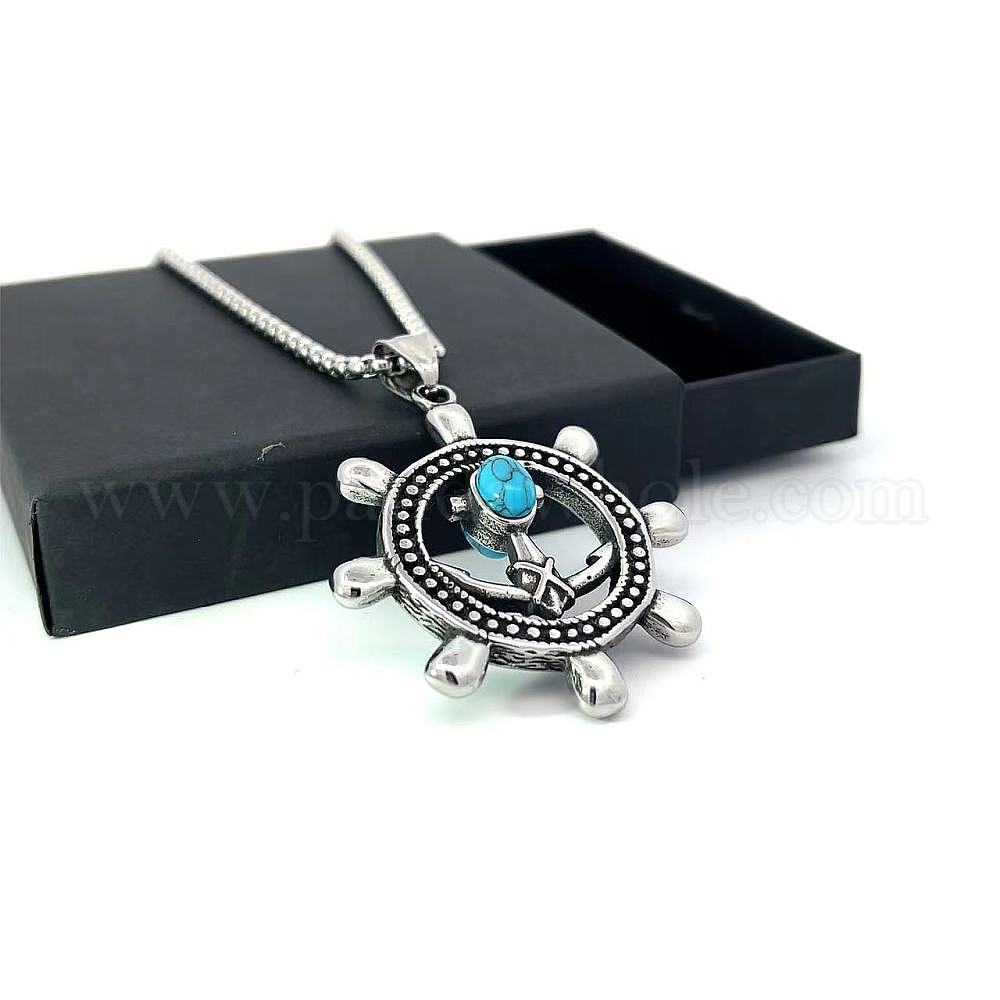 Ожерелья с подвеской в виде шлема из нержавеющей стали в морском стиле с паве из синтетической бирюзы (035Q4F)