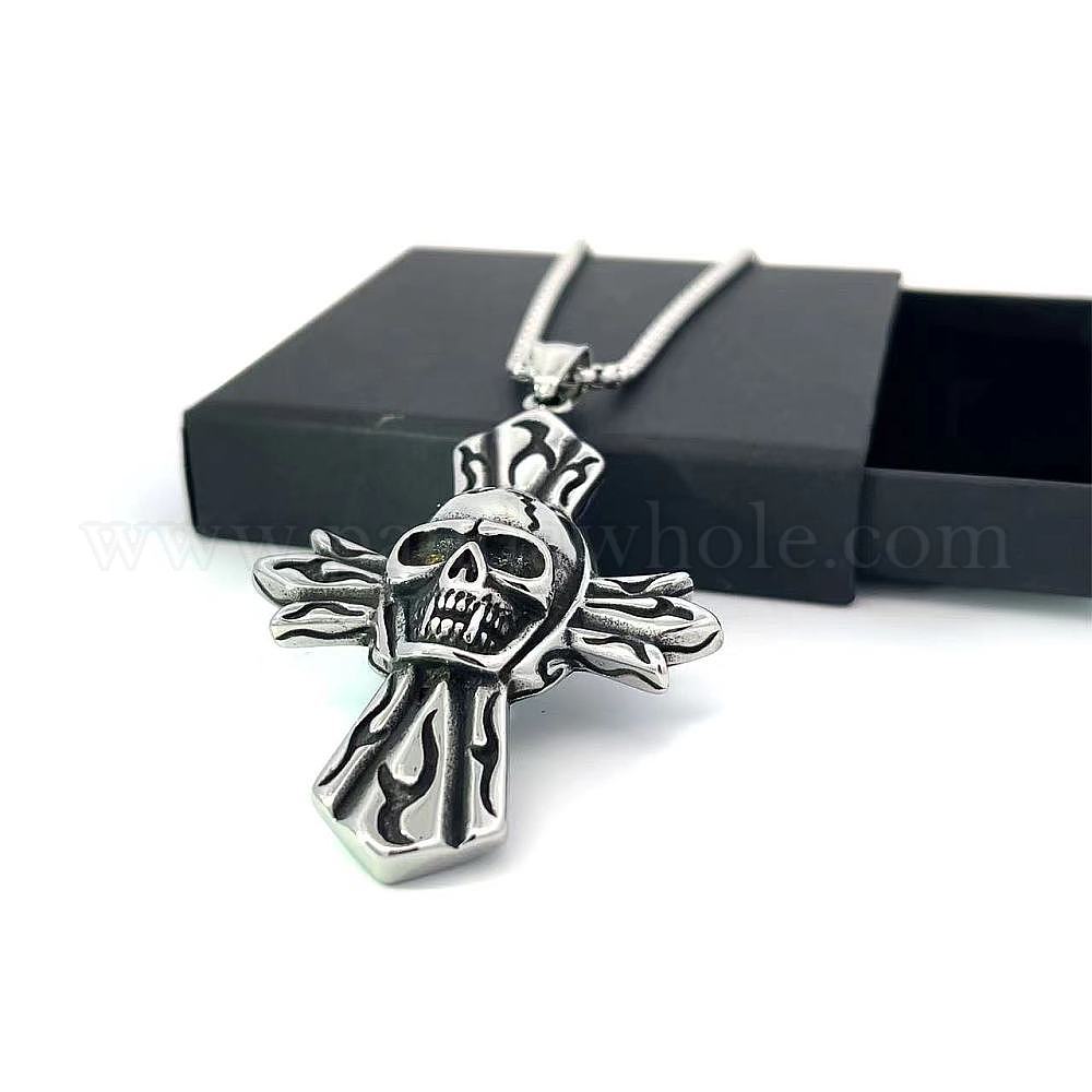 Ожерелья из нержавеющей стали с готической подвеской в виде черепа и креста для мужчин и женщин