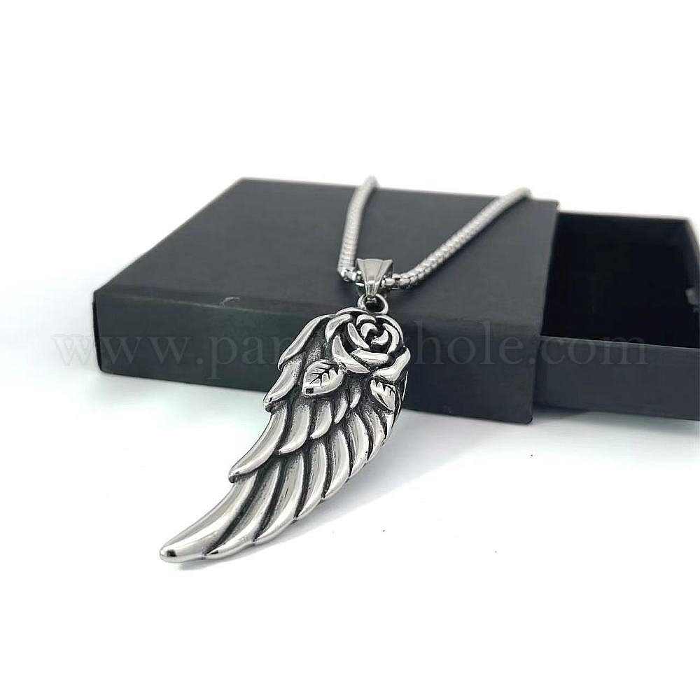 Подвеска в виде крыла ангела из нержавеющей стали в виде цветка розы и пера в стиле панк