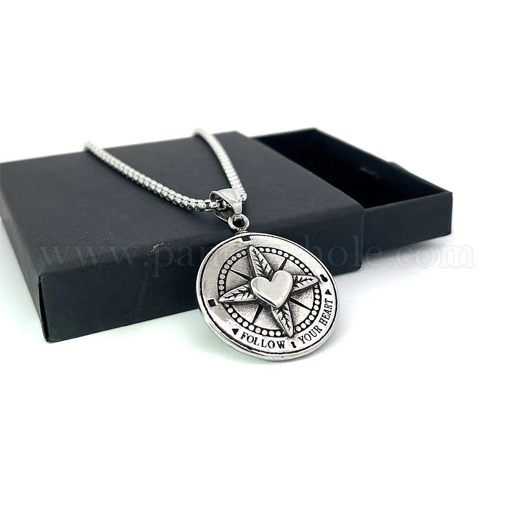 Плоские круглые ожерелья из нержавеющей стали с сердечками и крестами в виде листьев для мужчин
