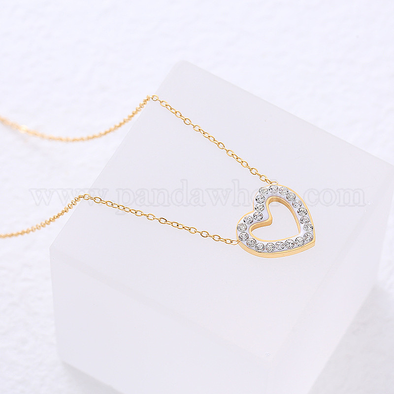 • Нержавеющая Сталь Цвет Минималистичные ожерелья из нержавеющей стали с подвеской в виде сердца и кристаллами из горного хрусталя для женщин, цвет нержавеющей стали