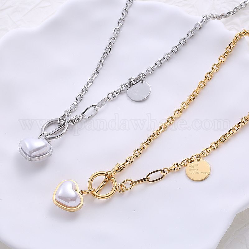Ожерелья из нержавеющей стали с имитацией жемчуга в форме сердца и о-образным креплением для женщин во французском стиле, белые