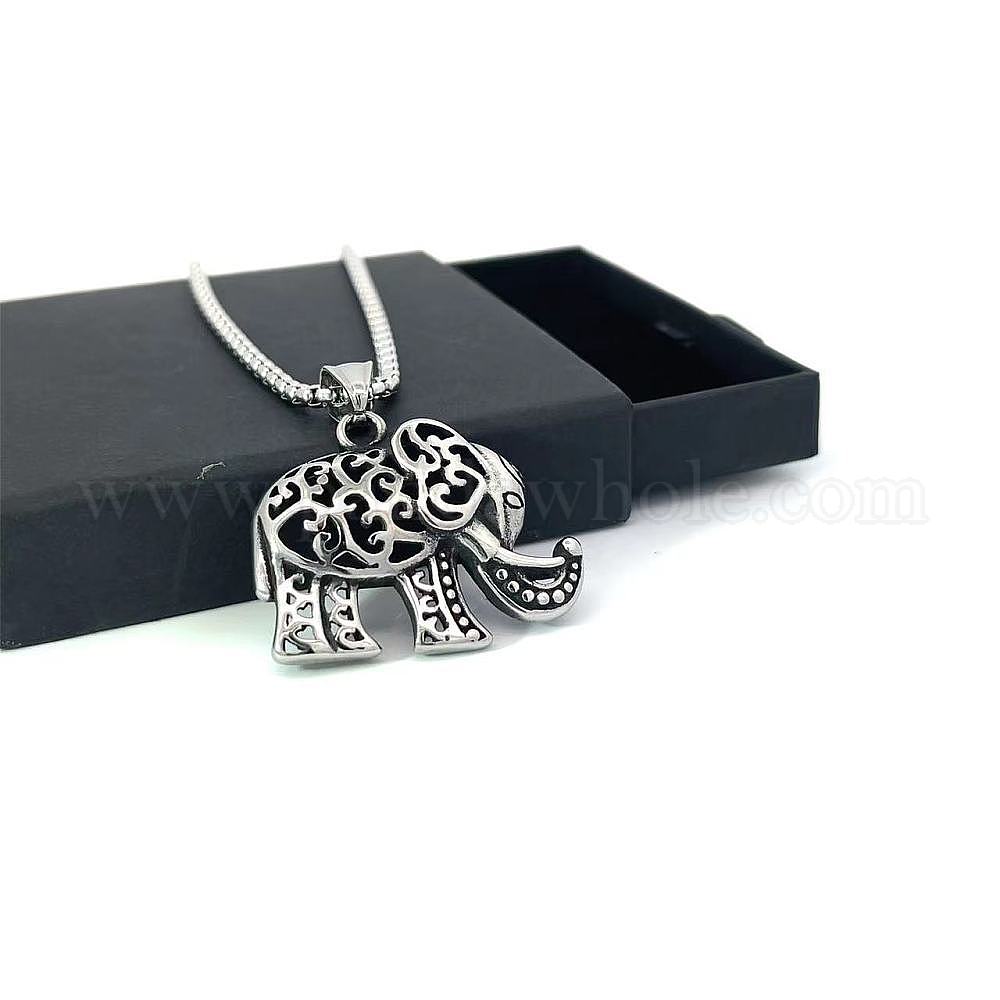 Винтажные полые ожерелья из нержавеющей стали в форме слона для любителей животных