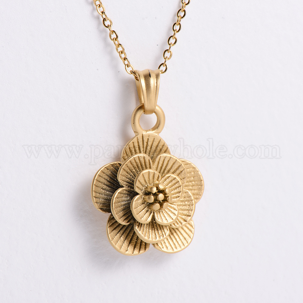 Винтажные 304 ожерелья с цветочным кулоном из нержавеющей стали для женщин, ионное покрытие (ip)